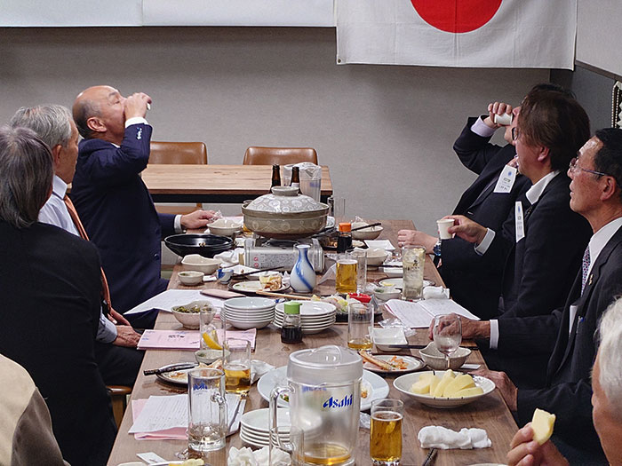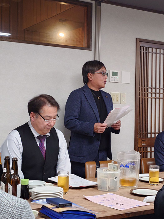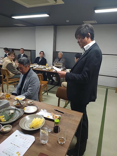 実施日/2025年12月16日(火) 場所/きたかみ川 出席者/18名 浅井智則, 渡邊和真, 高橋公達, 菊池敏昭, 佐藤民生, 菊池治夫, 遠藤渡, 齊藤永光, 高橋乃, 柏山栄治, 藤﨑信男, 菊池賢, 阿部裕明, 高橋政輝, 藤原勝男, 菊池大助, 高橋史頼, 鎌田浩希 ビジター/ZC付副幹事(北上LC)、北上LC会長、和賀LC会長、北上国見LC三役 計6名 18名出席/23名中(賛助会員2名・家族会員4名除く)出席率78.3% ドネーション 18,000円 議事 東南アジア・南アジアを襲う豪雨、洪水や土砂崩れでの甚大な被害に対する支援について(LCIF寄付のお願い)・・・一般会員×@1,000【承認】 弘前東奥ライオンズクラブより・友好クラブ締結調印式に関するご案内について・・・【承認】・2/15(日)「CN50・55周年記念式典・祝賀会」出席について・・・【会長・第一副会長・幹事・会計・姉妹友好委員の5名が出席】 ビジターへ記念品贈呈会長あいさつ委員会報告アテンダンス報告忘年会 開会のことば歓迎のことばZC付副幹事より、ZCよりお預かりのお言葉をいただきましたWe Serve!チャリティオークションを盛大に盛り上げてくれました♪健康酢を飲もう!! お茶で潤して更に健康になりました♪弘前東奥LCより、りんごを頂きましたテイ―ルツイスター登場また会う日までライオンズ・ローア閉会のことば