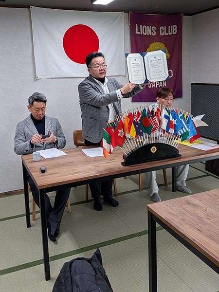 実施日/2026年3月10日(火) 場所/きたかみ川 出席者/16名 豊嶋遼平, 渡邊和真, 高橋公達, 菊池敏昭, 佐藤民生, 菊池治夫, 遠藤渡, 齊藤永光, 高橋乃, 藤﨑信男, 菊池賢, 阿部裕明, 高橋政輝, 平野良, 菊池大助, 高橋史頼 16名出席/23名中(賛助会員2名・家族会員4名除く)出席率69.6% ドネーション 8,000円 弘前東奥LCとの友好クラブ締結証キー賞2名達成!福井県へ転任の為、最後の挨拶
